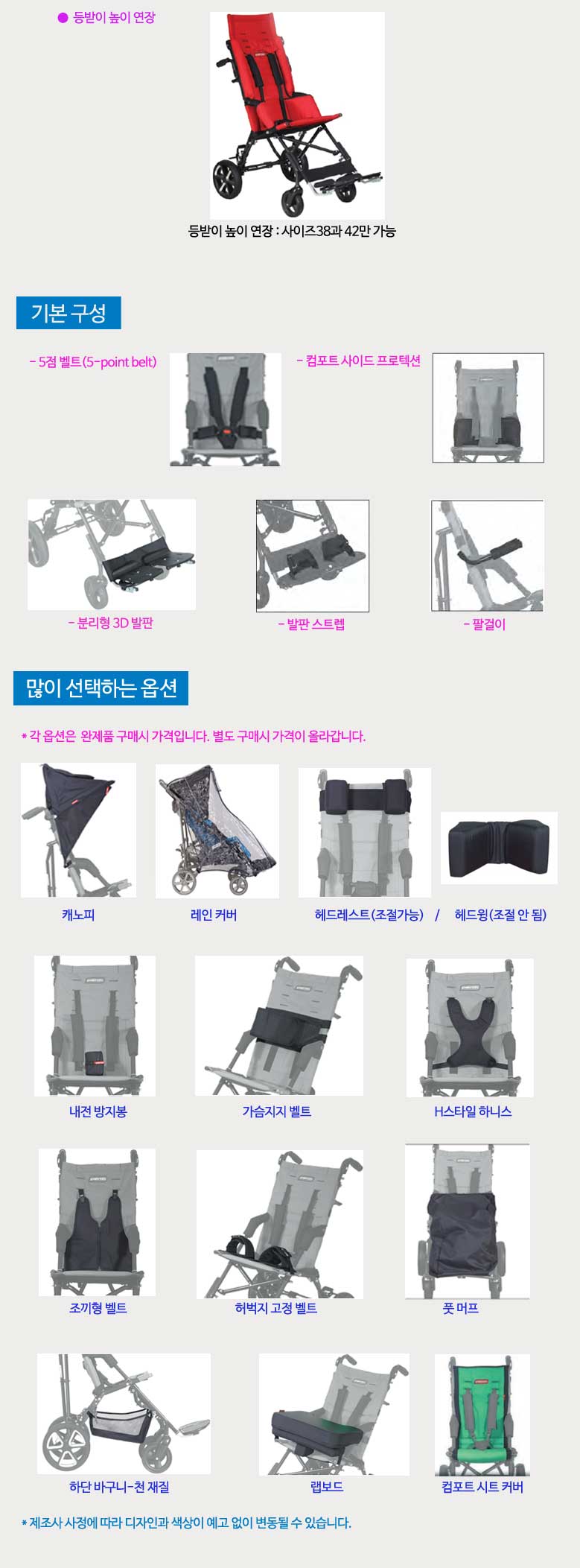 기본 사양 품목 : 5점식 벨트, 컴포트 사이드 프로텍션, 스윙 팔걸이,