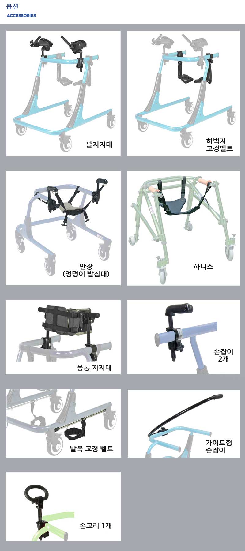* 옵션은 장비 없이 프레임에 부착 가능하고, 사용자의 필요와 상태에 따라 탈부착이 가능하다.